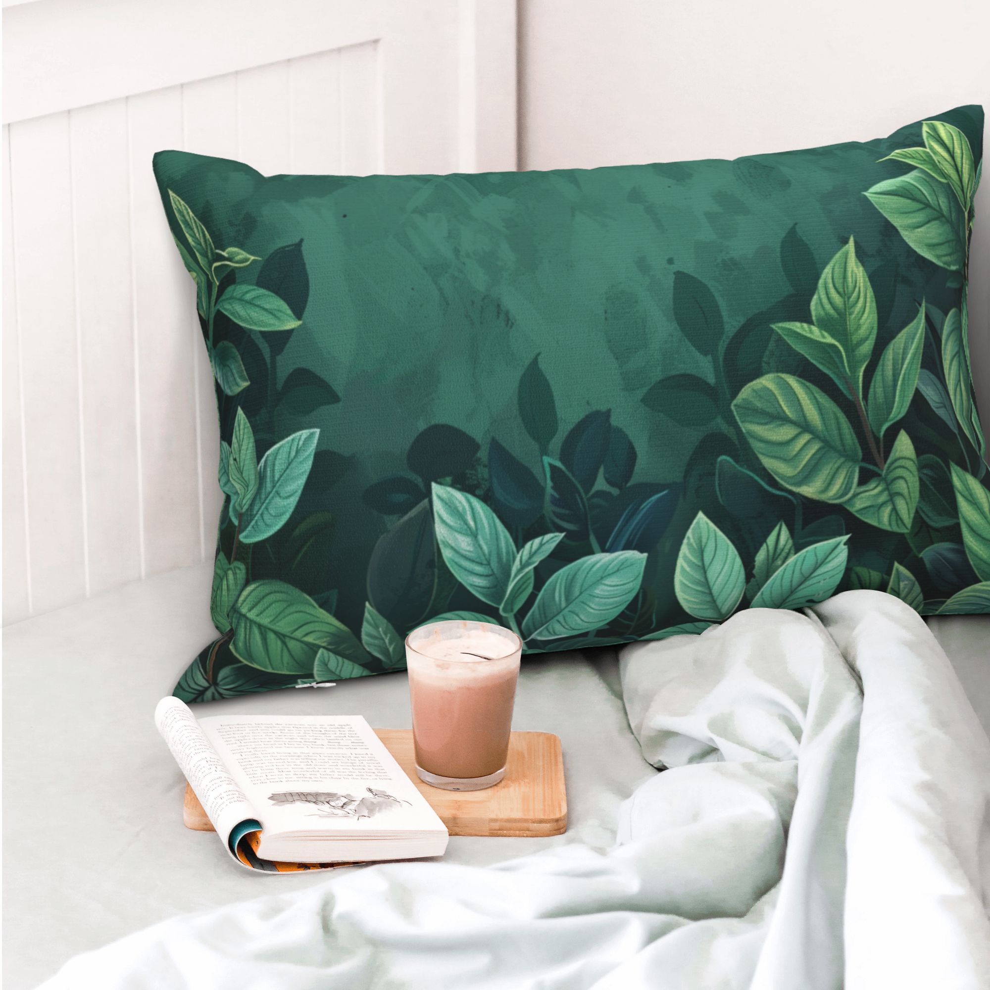 This green plant pattern rectangular throw pillow cover adds a touch of fresh and natural charm to your home decor. Made from high-quality fabric, it is comfortable and durable. The design features lush green leaves, showcasing the vitality of plant life. The deep green background combined with the richly layered leaf patterns creates a tranquil and natural atmosphere, making it perfect for decorating your bedroom, living room, or any space that needs a bit of greenery.