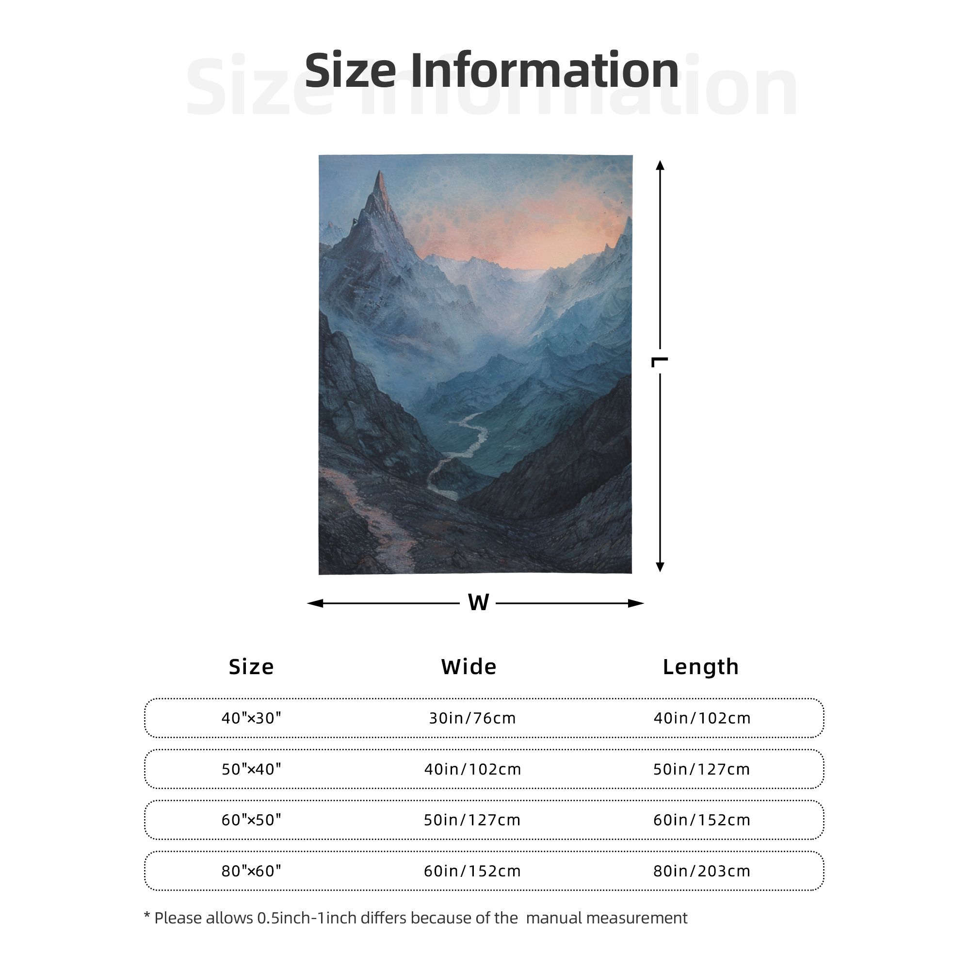 - 40″x30″ (W 76cm x L 102cm)